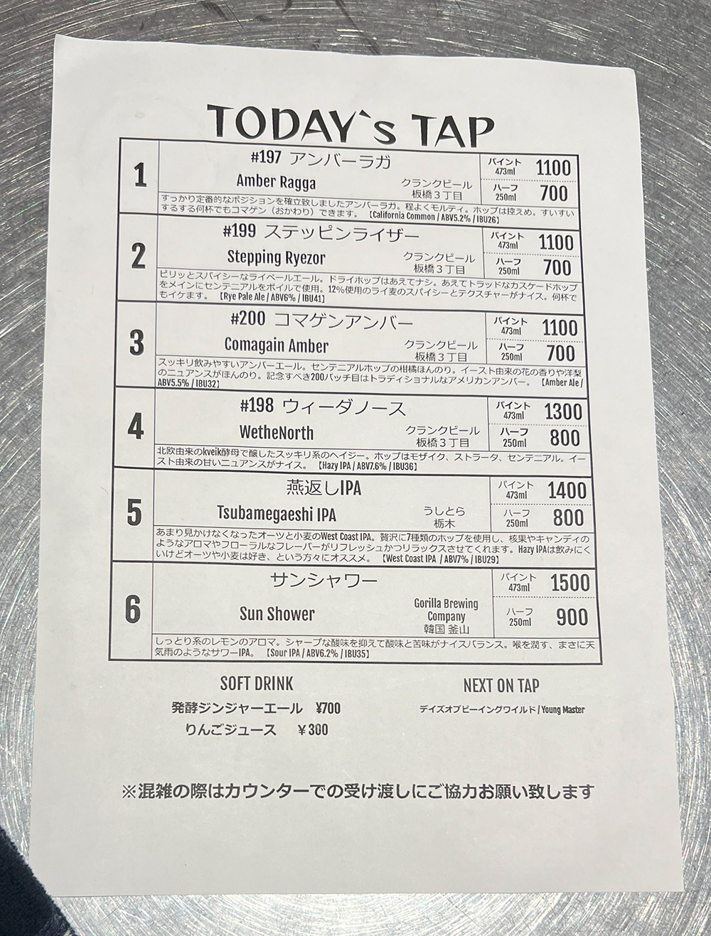 メニューの左側には【#●●●】と数字が入っています。これはこの店舗で生産されたビールの通し番号が付けているのだとか。まさに一期一会のクラフトビールを感じられますね。